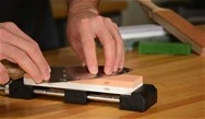 This fine chromium oxide and aluminum oxide abrasive is used when you want a polished, honed edge on your tools, and it can be used on leather, wood or synthetic strops. The waxy consistency makes it easy to apply the compound. Simply rub the bar of compound on your strop. Think of the compound as a big crayon and apply it evenly to your surface. There is no need to apply too aggressively, you don’t need much to be effective. After you’ve applied some compound, your strop will now polish your blade edges more quickly and will help you achieve a mirror polish.