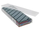 We made certain that they covered a wide range of grits. As such, we offer them from an aggressive 220 right up to a polishing 10,000 at well-spaced intervals. The available grits are: 220, 400, 1000, 3000, 6000, 8000 and 10,000. It’s unlikely that you will need every stone in that range, but rest assured you can find a complete set, whatever your needs may be.
