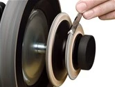 | LA-120 Profiled Leather Honing Wheel For honing and polishing the flute on gouges. With two exchangeable profiles. One with a 3 mm (1/8″) radius and one with a 60° point. | |