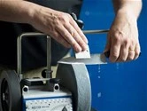The water cooled slow speed grindstone is in harmony with the physical laws governing the steel tool — the edge does not overheat and lose its hardness. You finish the sharpening process on the leather honing wheel, which lets you polish the edge to a razor sharpness. In addition, there is no grinding dust to pollute the air. The steel particles are deposited into the water trough. The Tormek method is safe. At the low speed, you can fully control the sharpening.